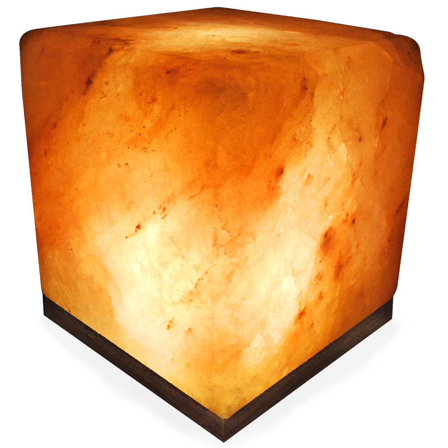 Crystal Allies Gallery CA SLS-CUBE-S Natural Himalayan Cube Salt Lamp on Wood Base with Cord, Light Bulb and Authentic Crystal Allies Info Card, 4.5″ x 4.5″ x 6.0″, Orange
