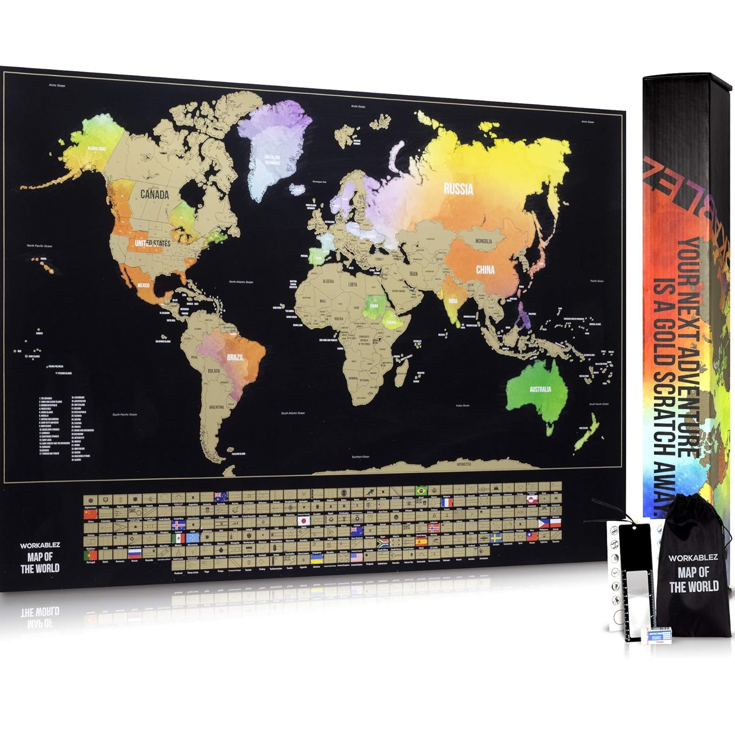 Scratch Off Map of The World – Unique Gold Foil Map Watercolor Poster of The World with All US States Outlined – 17 X 24 World Map Perfect to Track All of Your Travel Highlights